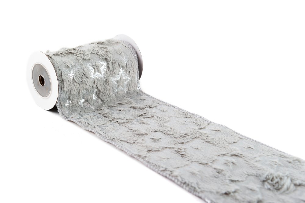 Umělá kožešina s potiskem stříbrných hvězdiček dodá aranžmá jemnost a zimní atmosféru. Skvěle se kombinuje s kovovými doplňky, světelnými řetězy či přírodními materiály.